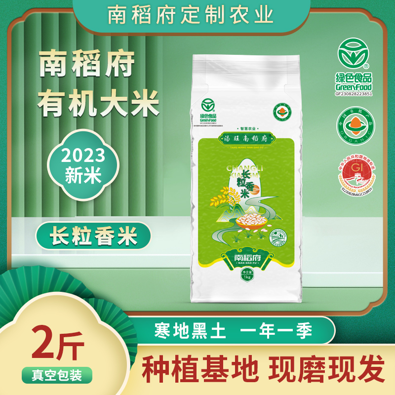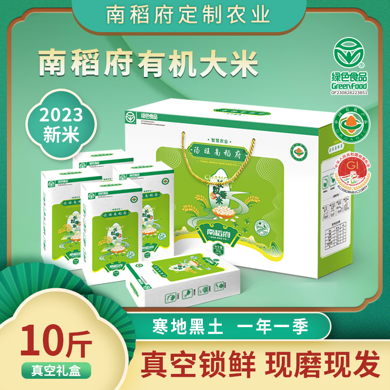汤旺南稻府有机长粒香米5kg绿色礼盒