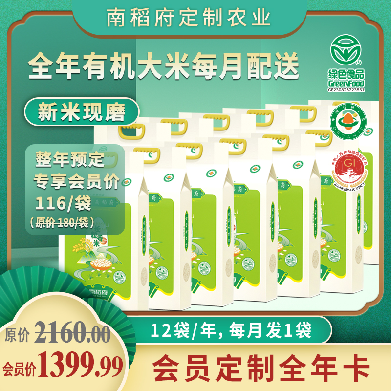 汤旺南稻府私人定制-有机长粒香米5kg年卡(12袋)