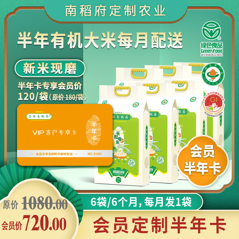 汤旺南稻府私人定制-有机长粒香米5kg半年卡(6袋)