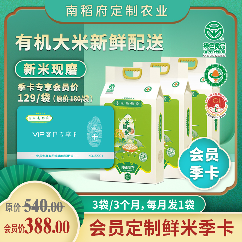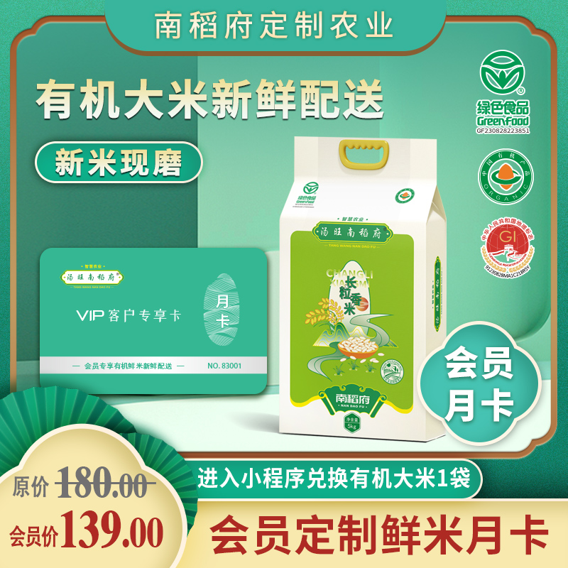 汤旺南稻府私人定制-有机长粒香米5kg月卡(1袋)