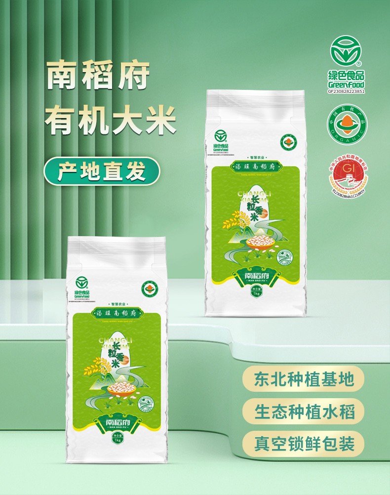 汤旺南稻府有机长粒香米1kg袋装