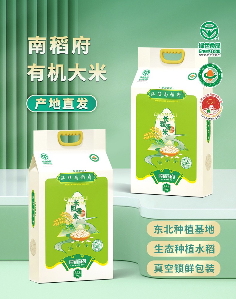 汤旺南稻府有机长粒香米5kg袋装