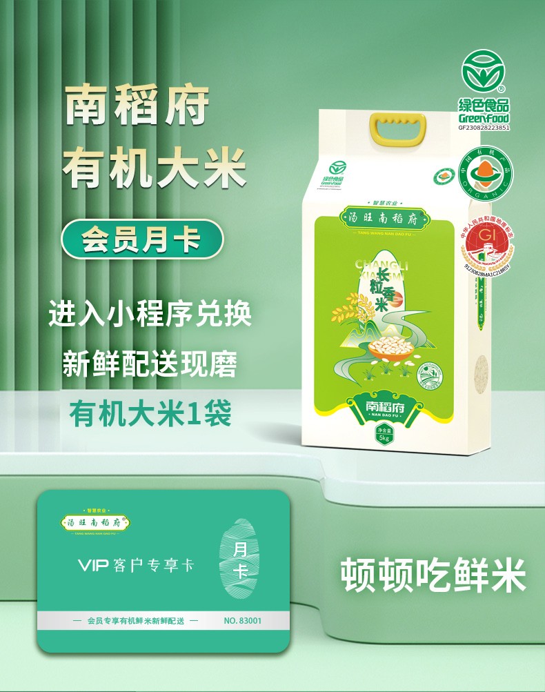 汤旺南稻府私人定制-有机长粒香米5kg月卡(1袋)